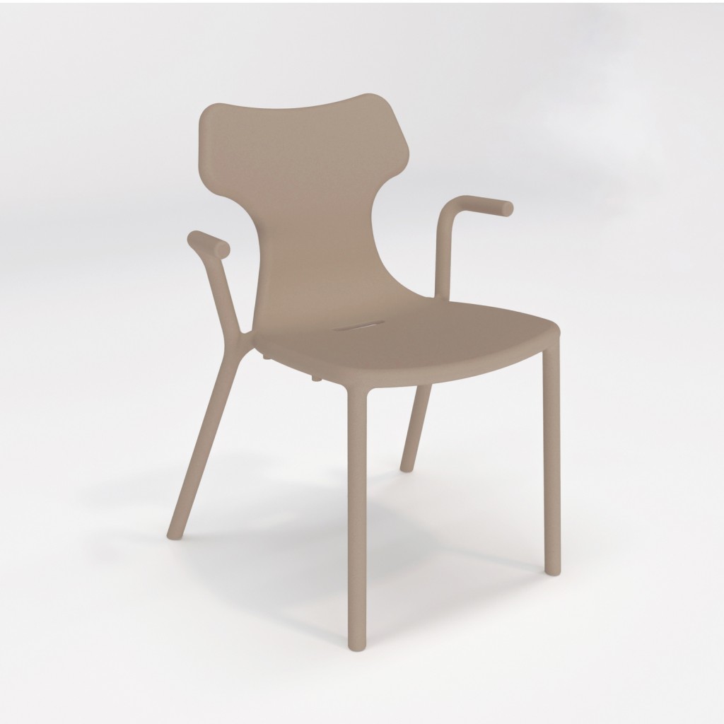 Monoblok gaz enjeksiyon yöntemiyle üretilen bu sandalyenin tasarımı ve çeşitli renk seçenekleri,